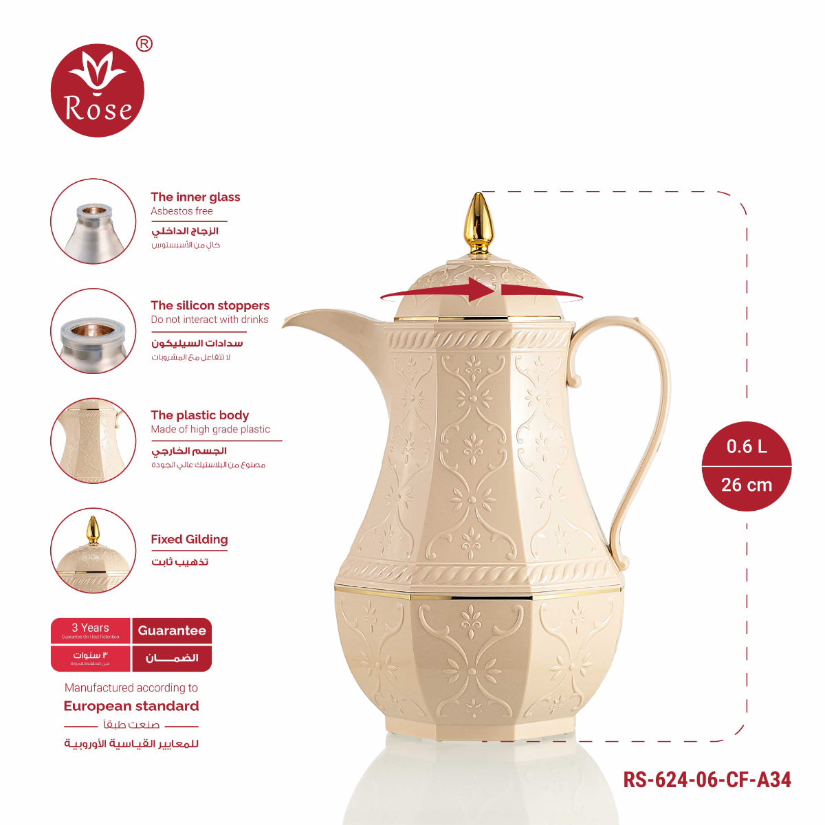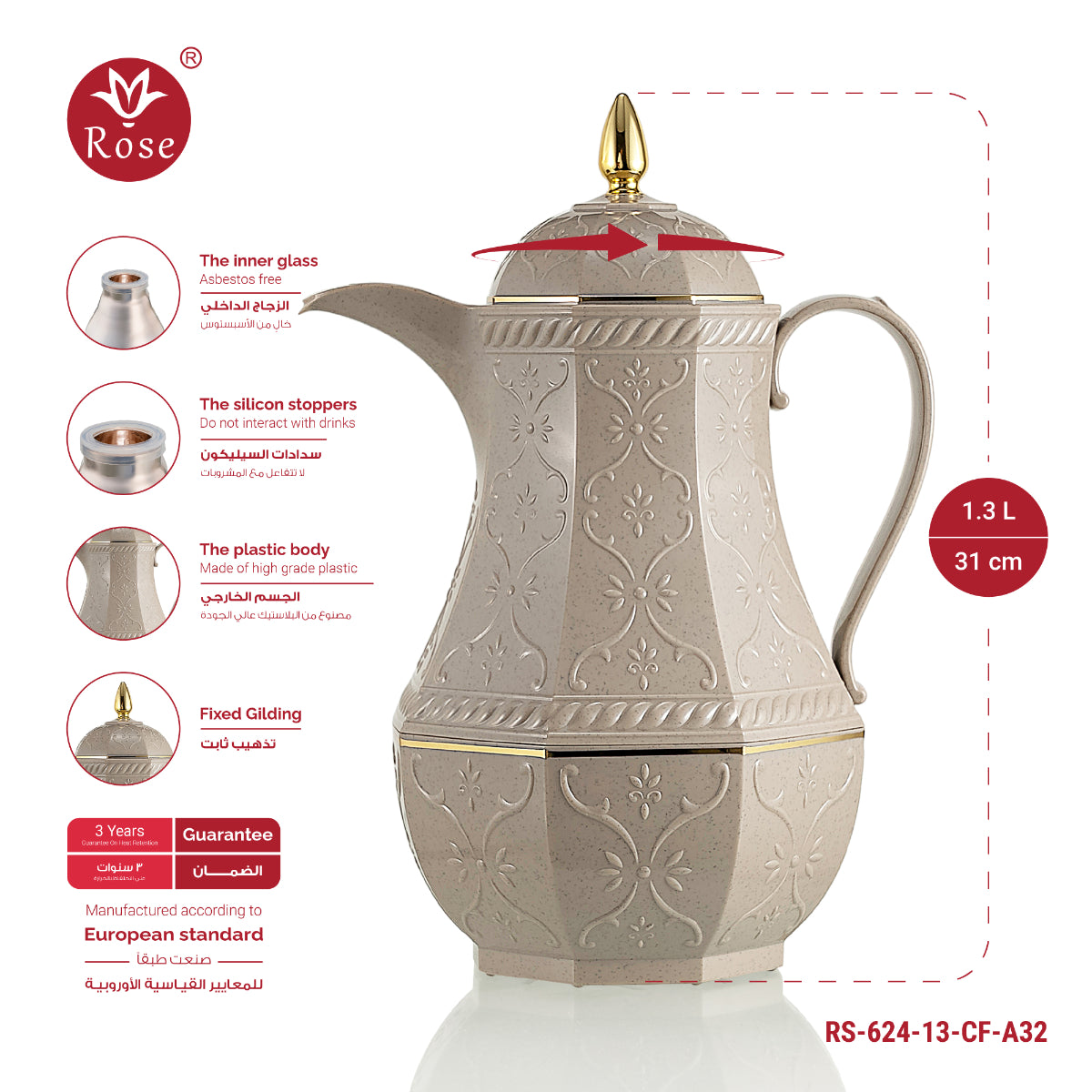 Pour yourself a rich cup of coffee anytime with the Rose Coffee Flask, crafted to combine style, performance, and comfort. Engineered with advanced insulation technology, this flask keeps your coffee hot for hours, ensuring every sip stays aromatic and flavorful. Its dense high-grade plastic body and asbestos-free inner glass provide long-lasting durability and safe daily use. Designed with a high-grip handle and a precision pouring spout, the Rose Coffee Flask offers effortless serving without spills.
