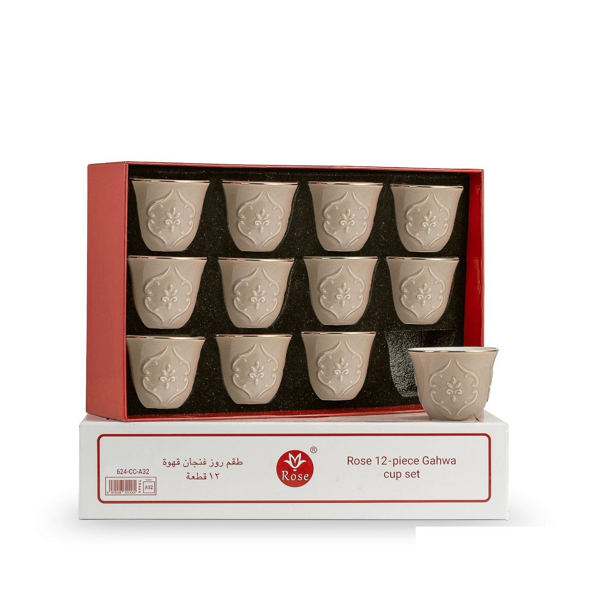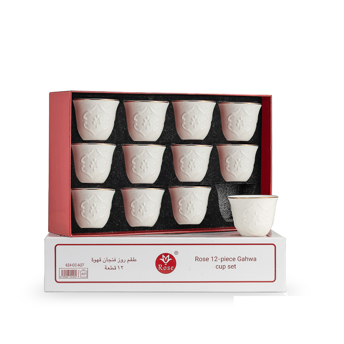 Serve Arabic coffee in style with the Rose 12-Piece Porcelain Cawa Cups (Model 624) — where traditional charm meets modern design.